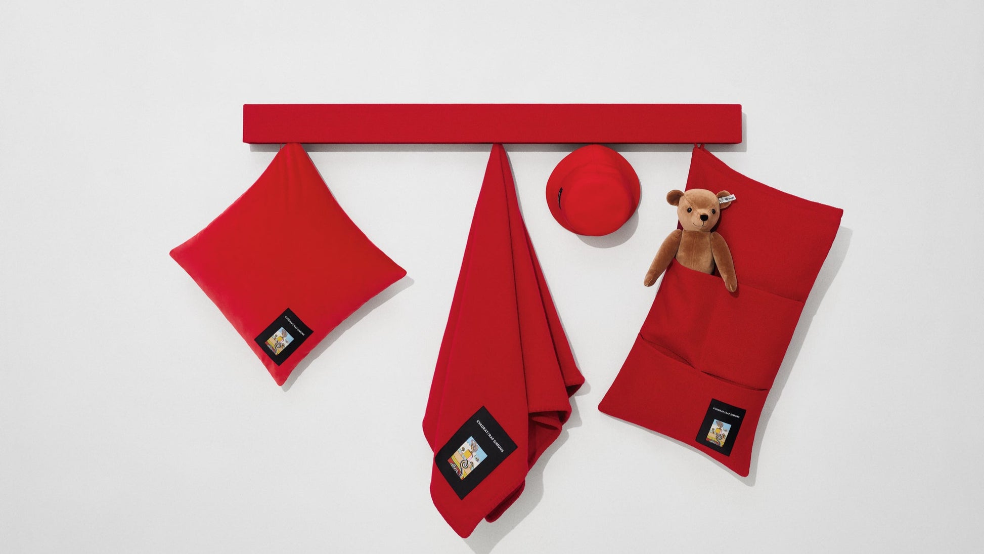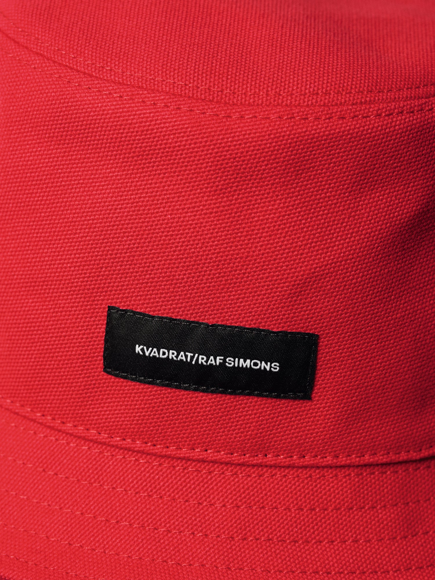 Featuring a Kvadrat/Raf Simons label and an inner loop for hanging, the hat is both practical and playful. It comes in two versatile colours, raven black and vermillion red.