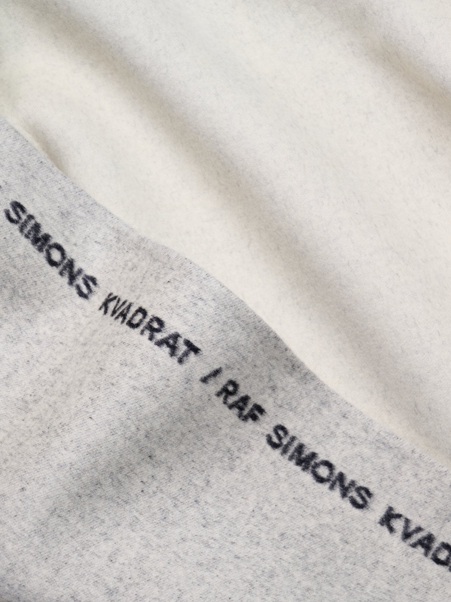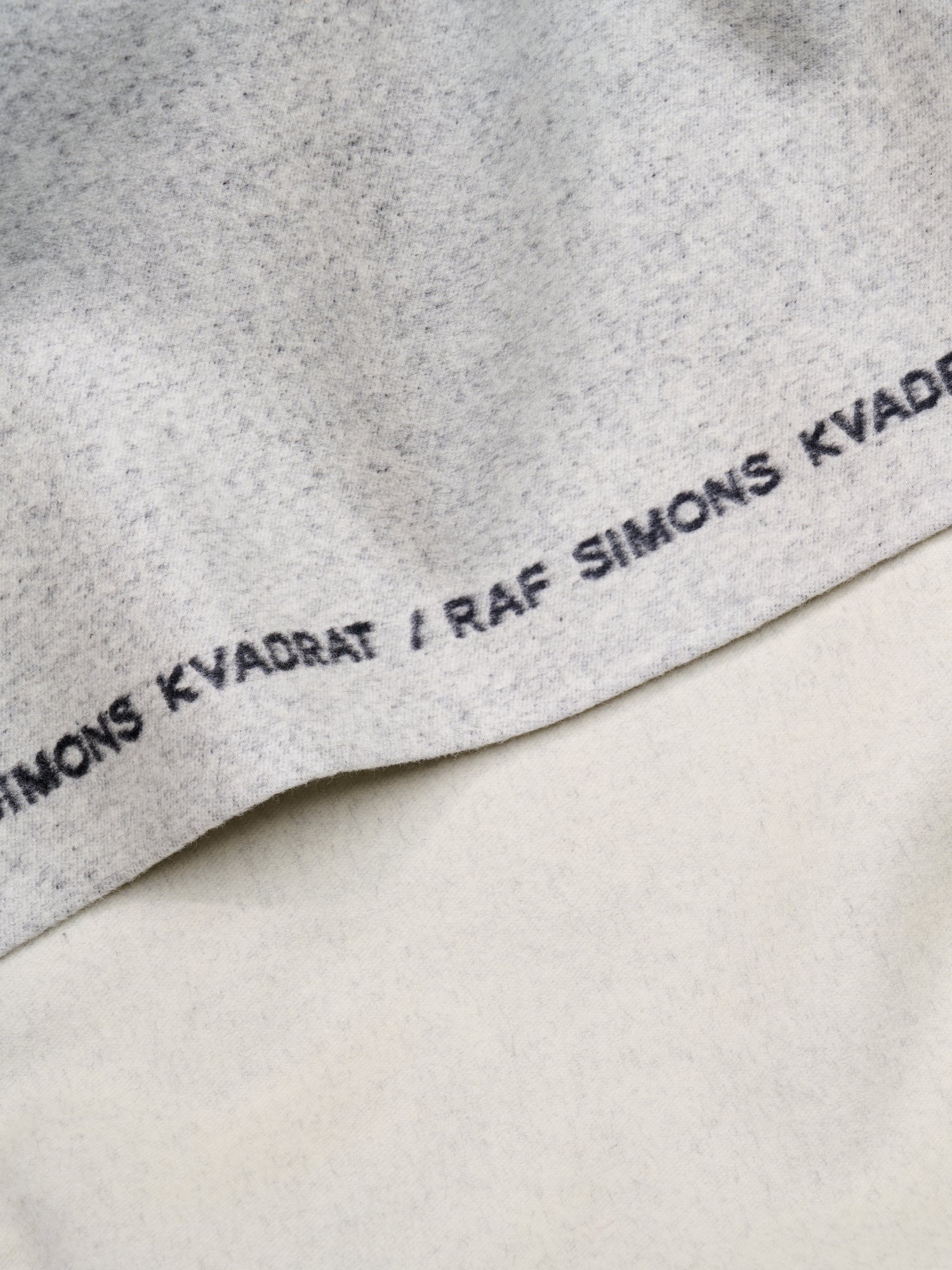 A double-faced new wool throw with a border imprinted with Kvadrat/Raf Simons in running type. Made in the finest new wool that is a very heavy quality yet soft to the hand. The throw is a classic Raf Simons riff on couture and street culture with sartorial detailing, graphic text art and juxtaposed colours.