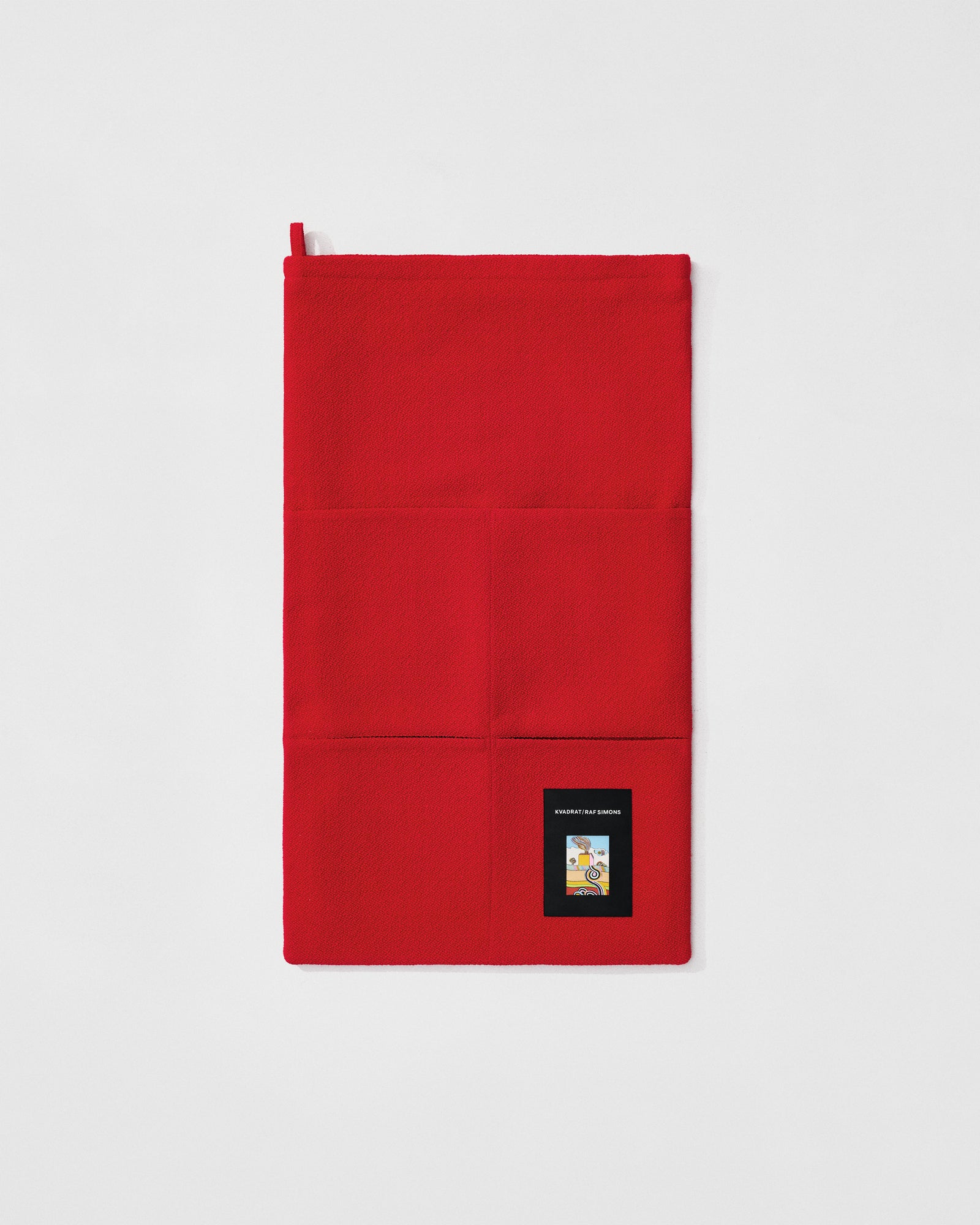 A clever mix of wall organiser and storage bag with four small pockets and one larger compartment. Designed to hold treasured items, it is both practical and imaginative, encouraging children to play and organise. The bag can be hung on the Shaker bar by a discreet loop or stand on the floor when filled. The small signature label connects it to the wider Kvadrat universe.